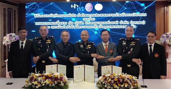 มิติหุ้น – บริษัท โทรคมนาคมแห่งชาติ จำกัด (มหาชน) หรือ NT ร่วมกับ กรมการทหารสื่อสาร และสถาบันเทคโนโลยีพระจอมเกล้าเจ้าคุณทหารลาดกระบัง (KMITL) ลงนามบันทึกข้อตกลงความร่วมมือทางวิชาการ เพื่อเพิ่มขีดความสามารถด้านการวิจัยและพัฒนาระบบวิเคราะห์ข้อมูลและสั่งการจากอากาศยานไร้คนขับ (UAV) และ CCTV เสริมศักยภาพระบบเฝ้าระวังชายแดน โดยมี พลโท พรเทพ ยังรักษา เจ้ากรมการทหารสื่อสาร ในฐานะหน่วยงานระบบสื่อสารเพื่อความมั่นคงของประเทศ พันเอก สรรพชัยย์ หุวะนันทน์ กรรมการผู้จัดการใหญ่ บริษัท โทรคมนาคมแห่งชาติ จำกัด (มหาชน) หรือ NT ผู้นำด้านโครงสร้างพื้นฐานดิจิทัลของประเทศ และ รองศาสตราจารย์ ดร.สมยศ เกียรติวนิชวิไล คณบดีคณะวิศวกรรมศาสตร์ สถาบันเทคโนโลยีพระจอมเกล้าเจ้าคุณทหารลาดกระบัง ในฐานะสถาบันอุดมศึกษาชั้นนำการวิจัยและพัฒนาเทคโนโลยีด้านวิศวกรรมและปัญญาประดิษฐ์ ณ ห้องประชุมกรมการทหารสื่อสาร อาคารเสรีเริงฤทธิ์ กรมการทหารสื่อสาร เขตดุสิต กรุงเทพมหานคร