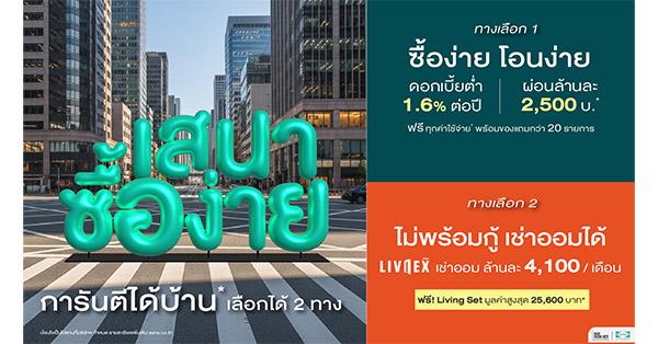 มิติหุ้น – SENA Development เปิดตัวแคมเปญใหญ่ต้นปี “เสนาซื้อง่าย” ยกระดับโอกาสการมีบ้านของคนไทย ด้วยแนวคิด “ไม่ว่าคุณจะอยู่ในสถานะไหน เสนาก็มีทางให้คุณได้บ้าน” ผ่านโซลูชันที่ออกแบบมาให้การซื้อบ้านง่ายที่สุดในตลาด ทั้งสำหรับคนที่พร้อมซื้อทันที และคนที่ยังไม่พร้อมกู้ในวันนี้ ด้วยระบบทางเลือกที่ครบวงจร ตั้งแต่การซื้อ การเช่าออม ไปจนถึงการเตรียมความพร้อมทางการเงิน SENA เปิดเกม “เสนาซื้อง่าย” การันตีได้บ้านจริง โซลูชันครบ พร้อมซื้อเลย – อยู่ก่อนกู้ผ่าน LivNex เช่าออมบ้าน พร้อมข้อเสนอที่ช่วยให้การเริ่มต้นเป็นเจ้าของบ้านทำได้ง่ายขึ้น ทั้งอัตราดอกเบี้ยพิเศษเริ่มต้น 1.6% เริ่มผ่อนล้านละประมาณ 2,500 บาทต่อเดือน แพ็กเกจ 0 บาท เข้าอยู่ได้ทันที ฟรีของแถมมากกว่า 20 รายการ ฟรีค่าใช้จ่ายวันโอน ครอบคลุมโครงการที่เข้าร่วมกว่า 47 โครงการทั่วกรุงเทพฯ และปริมณฑล และง่ายด้วยบริการเสริมจากธนาคารพันธมิตร
