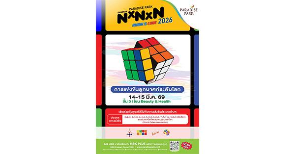 มาร่วมเชียร์และให้กำลังใจนักแข่งรูบิคชาวไทย ว่าจะสามารถสร้างผลงานโดดเด่นและทำลายสถิติใหม่ได้หรือไม่ ในการแข่งขัน Paradise Park Bangkok NxNxN 2026 ระหว่างวันเสาร์ที่ 14 – วันอาทิตย์ที่ 15 มีนาคม 2569 ณ ชั้น 3 Beauty & Health ศูนย์การค้าพาราไดซ์ พาร์ค