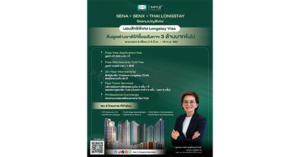 มิติหุ้น – บริษัท เสนาดีเวลลอปเม้นท์ จำกัด (มหาชน) หรือ SENA ร่วมกับ บริษัท ไทยจัดการลองสเตย์ จำกัด (TLM) เปิดตัวแคมเปญพิเศษเพื่อดึงดูดชาวต่างชาติให้เข้ามาลงทุนและอยู่อาศัยในประเทศไทย โดยมอบสิทธิประโยชน์สำหรับผู้ซื้อคอนโดมิเนียมพร้อมอยู่ของ SENA มูลค่า 3 ล้านบาทขึ้นไป รับส่วนลดและสิทธิพิเศษ พร้อมบริการอำนวยความสะดวกด้านวีซ่าพำนักระยะยาว 1 ปี สอดรับกับแนวโน้มการเติบโตของกลุ่มชาวต่างชาติที่มองหาประเทศปลายทางสำหรับการใช้ชีวิตระยะยาว และสนับสนุนประเทศไทยสู่การเป็น World-Class Living Destination ความร่วมมือครั้งนี้ตอกย้ำกลยุทธ์ของกลุ่มเสนาในการขยายฐานลูกค้าสู่ตลาดต่างชาติ ผ่านการผสานความแข็งแกร่งของ SENA ผู้พัฒนาโครงการที่อยู่อาศัยที่มุ่งสร้างคุณภาพชีวิตที่ดีและเข้าถึงได้ ควบคู่การพัฒนานวัตกรรมการอยู่อาศัยอย่างยั่งยืน กับ TLM ผู้เชี่ยวชาญด้านบริการ Long Stay สำหรับชาวต่างชาติ เพื่อสนับสนุนระบบนิเวศการอยู่อาศัยและการลงทุนในประเทศไทย