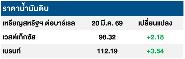 (-) ขณะที่มาตรการผ่อนคลายความกังวลด้านอุปทานน้ำมันดิบของสหรัฐฯ ยังคงดำเนินการต่อเนื่อง โดยล่าสุด นายสกอตต์ เบสเซนต์ รัฐมนตรีว่าการกระทรวงการคลังสหรัฐฯ ออกมาเปิดเผยว่าสหรัฐฯ ได้อนุญาตให้มีการจำหน่ายน้ำมันดิบและผลิตภัณฑ์ปิโตรเคมีของอิหร่านที่อยู่ระหว่างการขนส่งเป็นระยะเวลา 30 วัน จนถึงวันที่ 19 เม.ย. 69 โดยคาดการยกเว้นนี้จะส่งผลให้น้ำมันดิบเข้าสู่ตลาดโลกที่ระดับ 140 ล้านบาร์เรลต่อวัน