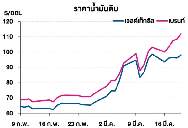 (+) ราคาน้ำมันดิบปรับเพิ่มขึ้น หลังความตึงเครียดในตะวันออกกลางตึงเครียดเพิ่มขึ้น โดยเสหรัฐฯ เผยว่าสหรัฐฯ มีนาวิกโยธินมายังตะวันออกกลางเพิ่มเติม เป็นสัญญาณว่าอาจเตรียมเปิดปฎิบัติการภาคพื้นดินต่ออิหร่าน หรือ เกาะคาร์ก (Kharg Island) ศูนย์กลางการส่งออกน้ำมันของอิหร่าน นอกจากนี้หลังตลาดปิด นายโดนัลด์ ทรัมป์ ผู้นำสหรัฐฯ ยื่นคำขาดต่ออิหร่าน ให้อิหร่านกลับมาเปิดการเดินเรือผ่านช่องแคบฮอร์มุซภายใน 48 ชั่วโมง โดยหากอิหร่านไม่ปฏิบิติตาม สหรัฐฯ จะเปิดฉากโจมตีโรงไฟฟ้าของอิหร่าน ขณะที่อิหร่านขู่จะเปิดฉากโจมตีโครงสร้างพื้นฐานสำคัญทั่วตะวันออกกลาง ท่าทีของสหรัฐฯ และอิหร่านในช่วงสุดสัปดาห์  ที่ผ่านมามีแนวโน้มส่งผลให้ความขัดแย้งที่ดำเนินอยู่ยกระดับขึ้นและสร้างความไม่แน่นอนกับตลาดน้ำมันดิบเพิ่มขึ้นด้วย