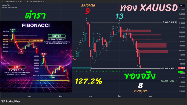 23-03-26 ความหวังทองฟื้น….พอมีไหม? ขอหยิบ “TD Sequential” ตัวแทนเวลา และ Fibonacci ตัวแทนราคามาคาดการณ์ ดังนี้