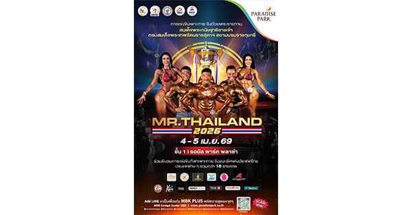 แฟนกีฬา อย่าพลาด! มาร่วมลุ้น ร่วมเชียร์ และให้กำลังใจนักกีฬาเพาะกายผู้ทุ่มเทฝึกซ้อมมาอย่างเต็มที่ ในการแข่งขันเพาะกาย MR. THAILAND 2026 ในวันเสาร์ที่ 4 – วันอาทิตย์ที่ 5 เมษายน 2569 ณ ชั้น 1 ลานรอยัล พาร์ค พลาซ่า ศูนย์การค้าพาราไดซ์ พาร์ค