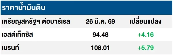 ราคาน้ำมันดิบปรับเพิ่ม หลังตลาดกังวลว่าสหรัฐฯ อาจเปิดปฎิบัติการภาคพื้นดินต่ออิหร่าน