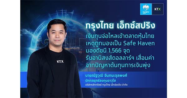 KTX กรุงไทย เอ็กซ์สปริง ชี้เงินทุนจ่อไหลเข้าตลาดหุ้นไทยเหตุถูกมองเป็น Safe Haven มองดัชนี1,566 จุด รับอานิสงส์ดอลลาร์ฯเสื่อมค่าจากปัญหาต้นทุนการเงินพุ่ง