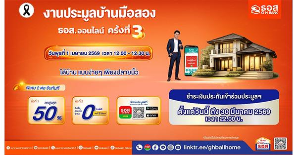 มิติหุ้น – ธนาคารอาคารสงเคราะห์ (ธอส.) ยกระดับประสบการณ์การซื้อที่อยู่อาศัย บนทำเลศักยภาพ และราคาดีให้กลายเป็นเรื่องง่ายเพียงปลายนิ้วสัมผัส ตอบโจทย์ไลฟ์สไตล์คนยุคใหม่ จัดประมูลบ้านมือสองออนไลน์ ธอส. ประจำปี 2569 ครั้งที่ 3 ในวันพุธที่ 1 เมษายน 2569 ระหว่างเวลา 12.00 – 12.30 น. ผ่าน Application : GHB ALL HOME โดยนำทรัพย์คุณภาพดี กว่า 1,000 รายการทั่วประเทศ ทั้งประเภทบ้านเดี่ยว บ้านแฝด ทาวน์เฮ้าส์ อาคารพาณิชย์ และที่ดินเปล่า ลดราคาสูงสุดถึง 50% จากราคาปกติ พร้อมโปรโมชันผลิตภัณฑ์สินเชื่อดอกเบี้ยพิเศษ 0% ต่อปี คงที่ 2 ปีแรก ผู้ที่สนใจสามารถดูทรัพย์จริงหรือรับชมภาพทรัพย์ก่อนเข้าร่วมประมูลได้ทาง Application : GHB ALL HOME หรือ www.ghbhomecenter.com และลงทะเบียนชำระเงินประกันเข้าร่วมประมูลออนไลน์ ได้ตั้งแต่วันนี้ ถึงวันที่ 30 มีนาคม 2569 เวลา 22.00 น.