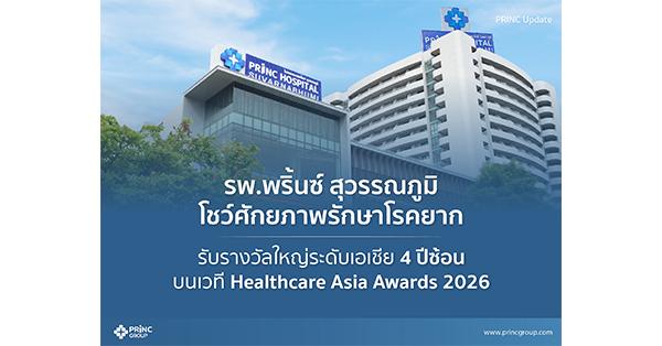โดยโรงพยาบาลพริ้นซ์ สุวรรณภูมิ นอกจากจะได้รับรางวัล ESG Program of the Year และรางวัล Tertiary Hospital of the Year ในงาน Healthcare Asia Awards 2026 ที่ตอกย้ำความสำเร็จต่อเนื่องปีที่ 4 ซ้อนแล้ว ยังผ่านการรับรองมาตรฐานสากล JCI (Joint Commission International) และมาตรฐานเทคโนโลยีสารสนเทศโรงพยาบาล HIMSS Analytics EMRAM Stage 7 รวมถึงยังได้รับการรับรองมาตรฐานคุณภาพด้านอนามัยสิ่งแวดล้อมและส่งเสริมสุขภาพ “Green & Clean Hospital Challenge” อีกทั้งยังมุ่งเน้นการให้บริการทางการแพทย์ที่ครอบคลุมทุกสาขาเฉพาะทางด้วยเทคโนโลยีที่ทันสมัย ภายใต้แนวคิดการดำเนินธุรกิจที่โปร่งใสและรับผิดชอบต่อสังคม เพื่อสร้างระบบนิเวศการดูแลสุขภาพที่ยั่งยืนให้กับภูมิภาคเอเชีย ความสำเร็จในครั้งนี้สะท้อนถึงแนวทางการดำเนินงานของ PRINC Group ในการพัฒนาองค์กรด้านสุขภาพควบคู่กับความยั่งยืน โดยปัจจุบันมีเครือข่ายโรงพยาบาลรวม 19 แห่ง ใน 15 จังหวัดทั่วประเทศ พร้อมทั้งขยายการให้บริการไปยังธุรกิจด้านสุขภาพที่เกี่ยวเนื่องและแพลตฟอร์มดิจิทัลอย่างต่อเนื่อง สามารถดูรายละเอียดเพิ่มเติมได้ที่ www.princgroup.com