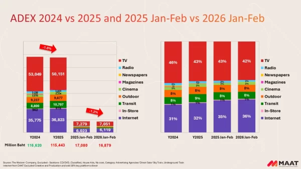 ในส่วนของ ADEX ปี 2569 ยังไม่มีสัญญาณบวกที่ชัดเจน เนื่องจากสถานการณ์สงครามสหรัฐฯ – อิสราเอล – อิหร่าน ที่ส่งผลกระทบในวงกว้างทั่วโลก และยังไม่มีแนวโน้มว่าจะยุติลงในเร็ววัน เหตุการณ์ดังกล่าวกระทบต่อหลายภาคส่วนของเศรษฐกิจ ทั้งปัญหาน้ำมันขาดตลาด ราคาน้ำมันปรับสูงขึ้น และค่าไฟที่อาจมีการปรับราคา ซึ่งล้วนส่งผลต่อค่าครองชีพของประชาชน และกระทบต่อแนวโน้มการเติบโตของเม็ดเงินโฆษณาโดยรวม