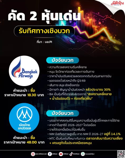 คัด 2 หุ้นเด่น รับทิศทางเชิงบวก