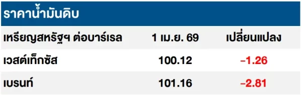 ราคาน้ำมันดิบปรับลด หลังสหรัฐฯ เผยสัญญาณยุติสงคราม
