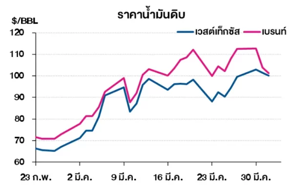 (-) ราคาน้ำมันดิบเวสต์เท็กซัสและเบรนท์ปรับลดลง หลังประธานาธิบดีสหรัฐฯ นาย โดนัลด์ ทรัมป์ ส่งสัญญาณอาจพิจารณายุติการสู้รบกับอิหร่าน โดยระบุว่า ผู้นำอิหร่านได้ร้องขอให้สหรัฐฯ หยุดการโจมตี อย่างไรก็ดี ประธานาธิบดีสหรัฐฯ ย้ำว่า สหรัฐฯ จะพิจารณาการยุติการโจมตีก็ต่อเมื่ออิหร่านเปิดช่องแคบฮอร์มุซให้การขนส่งทางทะเลกลับมาดำเนินได้ตามปกติเท่านั้น มิเช่นนั้น สหรัฐฯจะยังคงปฏิบัติการทางทหารต่อไปและอิหร่านจะถูกโจมตีอย่างราบคาบ