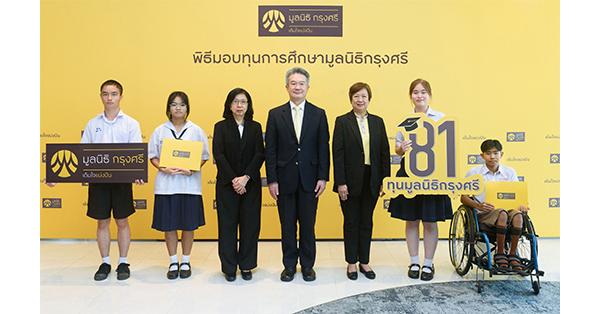 Mitihoon – Professor Dr. Sakda Thanitcul (center), Krungsri director, together with senior executives of Bank of Ayudhya Public Company Limited jointly granted continuing scholarships under the “Krungsri Foundation Scholarship” project to 81 underprivileged children and youths from seven foster homes, schools, and foundations. The initiative aims to expand better educational opportunities and enhance the academic performance of Thai students with good academic record and conduct.