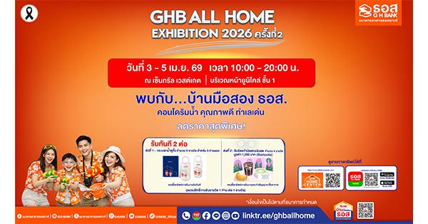 มิติหุ้น – ธนาคารอาคารสงเคราะห์ (ธอส.) เดินหน้ากระตุ้นตลาดอสังหาริมทรัพย์ปี 2569 จัดโรดโชว์มหกรรมบ้านมือสอง GHB ALL HOME EXHIBITION 2026 ครั้งที่ 2 ระหว่างวันที่ 3 – 5 เมษายน 2569 เวลา 10.00 – 20.00 น. ณ เซ็นทรัล เวสต์เกต คัดสรรทรัพย์เด่น ทำเลดีทั่วประเทศ มาจำหน่ายในราคาคุ้มค่า พร้อมโปรโมชันพิเศษ