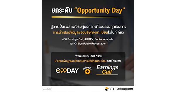 มิติหุ้น – ตลาดหลักทรัพย์แห่งประเทศไทย ยกระดับ “Opportunity Day” สู่การเป็นแพลตฟอร์มศูนย์กลางที่รวบรวมทุกช่องทางการนำเสนอข้อมูลของบริษัทจดทะเบียน (บจ.) ไว้ในที่เดียว มุ่งสร้าง ecosystem ของข้อมูลธุรกิจที่โปร่งใสและมีประสิทธิภาพ พร้อมรีแบรนด์กิจกรรมนำเสนอข้อมูลผลประกอบการ บจ.รายไตรมาสเป็น “Earnings Call” เพื่อยกระดับการเปิดเผยข้อมูลที่สำคัญสำหรับผู้ลงทุน นักวิเคราะห์ และสื่อมวลชน โดยเริ่มตั้งแต่วันที่ 16 เมษายน 2569 (รอบงบการเงินไตรมาส 1/2569) เป็นต้นไป ตามพันธกิจในการยกระดับคุณภาพบริการเพื่อสร้างตลาดที่น่าเชื่อถือ (Trusted Marketplace) และเป็นการส่งเสริมศักยภาพของผู้เกี่ยวข้องทุกกลุ่ม (Empowering Market Participants) ภายใต้วิสัยทัศน์ “The Trusted Gateway to Inclusive Opportunities”