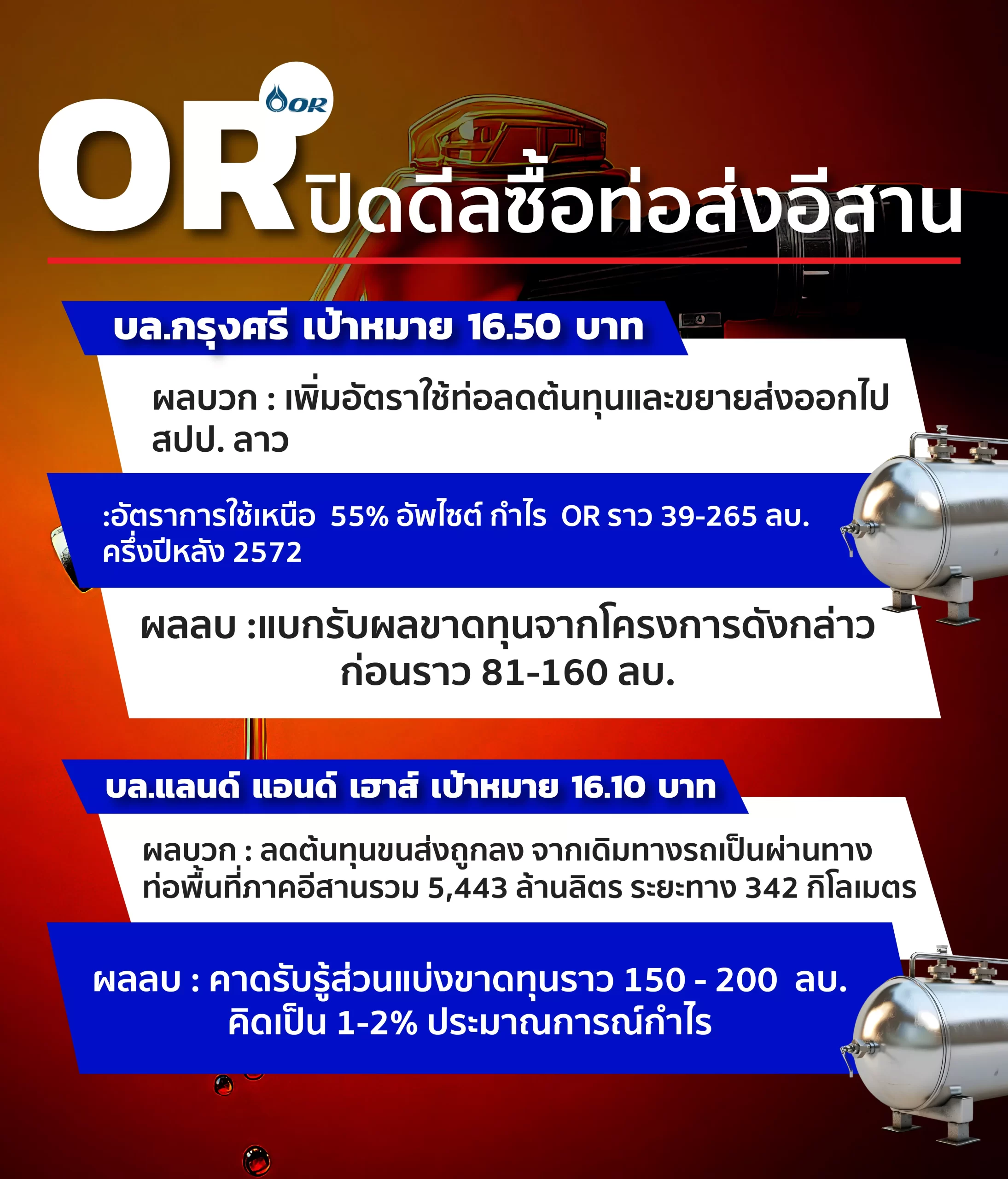 โบรกเปิดมุมมองต่อ OR เปิดดีลซื้อท่อส่ง
