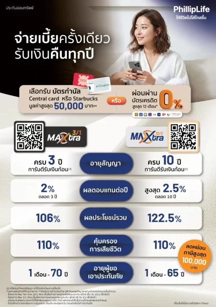 นายธฤทธิ์ พรหมนารถ ประธานเจ้าหน้าที่บริหาร ฟิลลิปไลฟ์ประกันชีวิต กล่าวว่า “ในยุคที่ความไม่แน่นอนทางเศรษฐกิจกลายเป็นปัจจัยสำคัญในการตัดสินใจทางการเงิน ลูกค้าจำนวนมากมองหาผลิตภัณฑ์ที่สามารถให้ทั้งความมั่นคงและความยืดหยุ่น “Max 3/1 Xtra” จึงถูกออกแบบมาเพื่อตอบโจทย์ดังกล่าว โดยเฉพาะกลุ่มคนวัยทำงาน เจ้าของธุรกิจ และนักลงทุน ที่ต้องการบริหารเงินในระยะสั้น แต่ยังคงได้รับผลตอบแทนที่ชัดเจน พร้อมความคุ้มครองชีวิตในเวลาเดียวกัน เราเชื่อว่าผลิตภัณฑ์นี้จะช่วยให้ลูกค้าสามารถวางแผนการเงินได้อย่างมั่นใจมากยิ่งขึ้น”