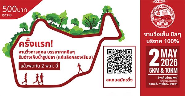 สำหรับกิจกรรม “GENERALI RUNTRIBUTE: REBUILD HAT YAI” จัดขึ้นในวันที่ 2 พฤษภาคม 2569 ตั้งแต่เวลา 14.00 – 20.00 น. ณ อ่างเก็บน้ำคอหงส์ (แก้มลิงคลองเรียน) เทศบาลเมืองคอหงส์ อำเภอหาดใหญ่ จังหวัดสงขลา โดยแบ่งรูปแบบการวิ่งออกเป็น Mini Marathon ระยะทาง 10 กิโลเมตร และ Fun Run ระยะทาง 5 กิโลเมตร ค่าสมัครเพียง 500 บาท ทุกระยะทาง พร้อมร่วมวิ่งไปกับ “วีเจจ๋า” ณัฐฐาวีรนุช ทองมี ที่จะมาร่วมสร้างสีสันและแรงบันดาลใจตลอดเส้นทาง