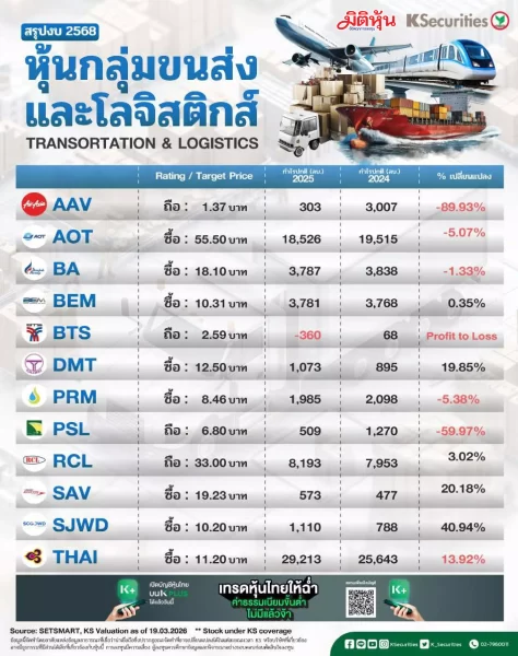 หุ้นกลุ่มขนส่งและโลจิสติกส์ By บล.กสิกรไทย
