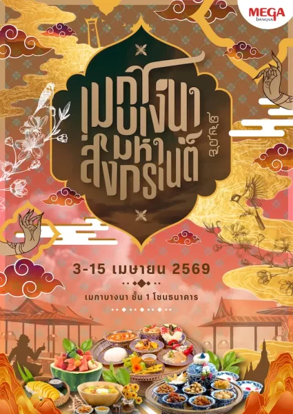 ร่วมเติมเต็มความสุขและความอร่อยต้อนรับเทศกาลปีใหม่ไทยไปกับงาน “เมกาบางนา มหาสงกรานต์” วันที่ 3 – 15 เมษายน 2569 ณ ชั้น 1 โซนธนาคาร ศูนย์การค้าเมกาบางนา ที่พร้อมชวนทุกคนมาเพลิดเพลินกับหลากหลายเมนูเด็ดจากร้านดังและร้านอร่อยจากทั่วไทย ท่ามกลางบรรยากาศตลาดแบบไทยที่เปี่ยมด้วยสีสันและเสน่ห์ของเทศกาลสงกรานต์