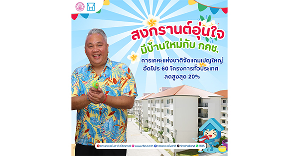 มิติหุ้น – การเคหะแห่งชาติ (กคช.) เดินหน้ามาตรการกระตุ้นการมีที่อยู่อาศัยของประชาชน จัดแคมเปญ “สงกรานต์อุ่นใจ มีบ้านใหม่กับ กคช. 2026” นำโครงการที่อยู่อาศัยพร้อมอยู่ทั่วประเทศเข้าร่วมกว่า 60 โครงการ มอบส่วนลดสูงสุด 20% พร้อมเงื่อนไขพิเศษ วางมัดจำเริ่มต้นเพียง 1,000 บาท อัตราดอกเบี้ยเริ่มต้น 2.50% และผ่อนชำระได้นานสูงสุด 40 ปี ระหว่างวันนี้ถึง 30 มิถุนายน 2569