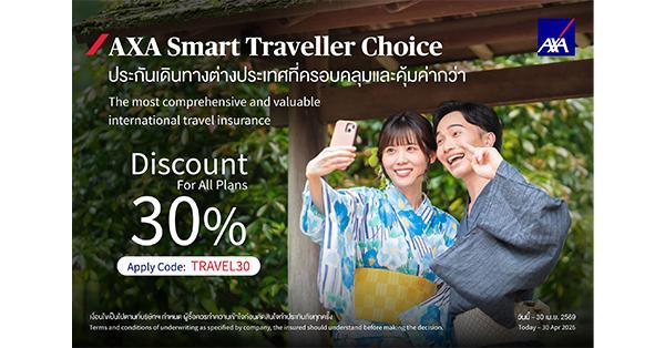 โปรโมชั่นสุดพิเศษ! รับส่วนลดทันที 30% เมื่อซื้อแผนประกันการเดินทาง “AXA Smart Traveller’s Choice” ผ่านช่องทางออนไลน์ เพียงกรอกโค้ด “TRAVEL30” ตั้งแต่วันนี้ – 30 เมษายน 2569 เท่านั้น