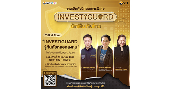 มิติหุ้น – พิพิธภัณฑ์เรียนรู้การลงทุน INVESTORY ตลาดหลักทรัพย์แห่งประเทศไทย เชิญชวนผู้สนใจมาสัมผัสประสบการณ์เรียนรู้กับนิทรรศการพิเศษชุดใหม่ “INVESTiGUARD นักสืบกันโกง” เรียนรู้ด้วยตนเองและฝึกทักษะสังเกตกลโกงผ่านเกมที่จะช่วยสร้างเกราะป้องกันให้รู้เท่าทันมิจฉาชีพ พร้อมร่วมฟังเสวนาหัวข้อ “INVESTiGUARD รู้ทันภัยหลอกลงทุน” เจาะลึกภัยไซเบอร์ที่ต้องระวังในปัจจุบัน พบกับวิทยากรผู้เชี่ยวชาญ นำโดย พันตำรวจตรี พากฤต กฤตยพงษ์ สารวัตรกลุ่มงานรักษาความมั่นคงปลอดภัยทางไซเบอร์ กองบัญชาการตำรวจสืบสวนสอบสวนอาชญากรรมทางเทคโนโลยี (CCIB) และคุณพีรพล อนุตรโสตถิ์ ผู้จัดการศูนย์ชัวร์ก่อนแชร์ สำนักข่าวไทย อสมท. ดำเนินรายการโดย คุณศรวณีย์ พรมเสน ผู้ดำเนินรายการช่อง SET Zooom in